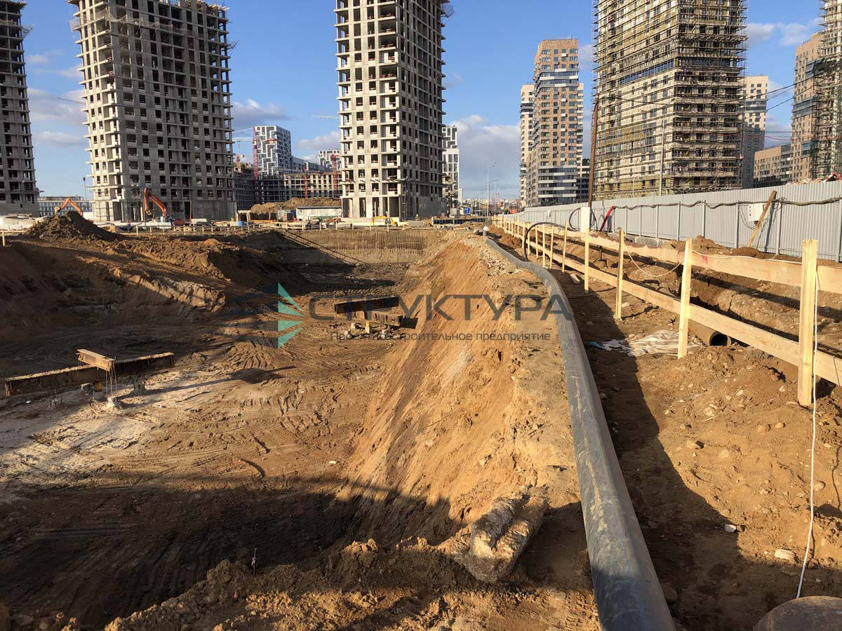 Возведение многосекционного жилого комплекса проводилось в 3 этапа и каждый под защитой водопонижения